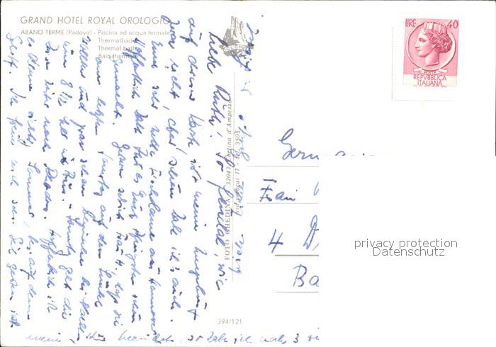Abano Terme Grand Hotel Royal Orologio Thermalbad postalisch nicht gelaufen Erhaltung siehe scans