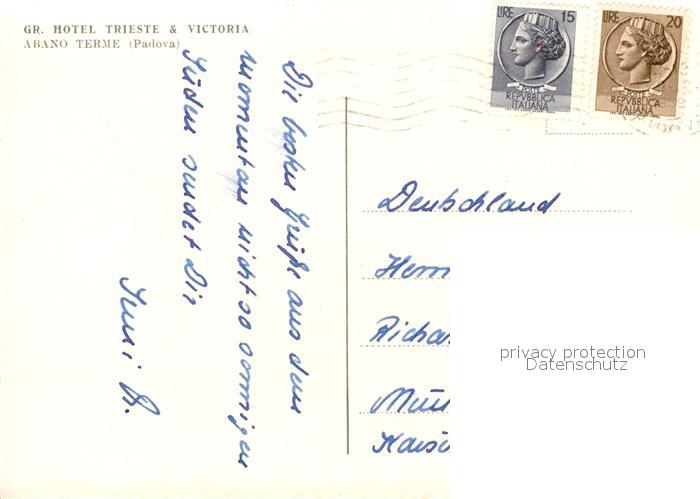 old postcard Abano Terme Grand Hotel Trieste e Victoria postalisch gelaufen Erhaltung siehe scans [PaolaD17]