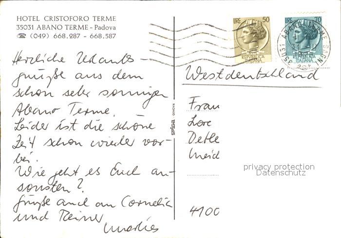 old postcard Abano Terme Hotel Cristoforo Terme postalisch gelaufen Erhaltung siehe scans