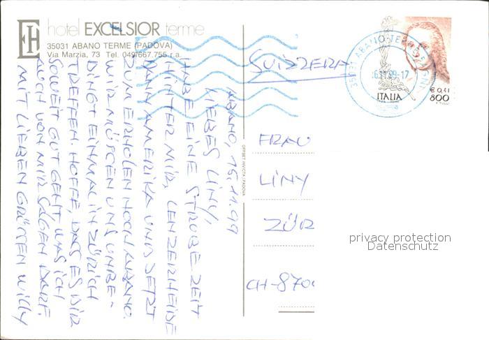 old postcard Abano Terme Hotel Excelsior Schwimmbad postalisch gelaufen Erhaltung siehe scans