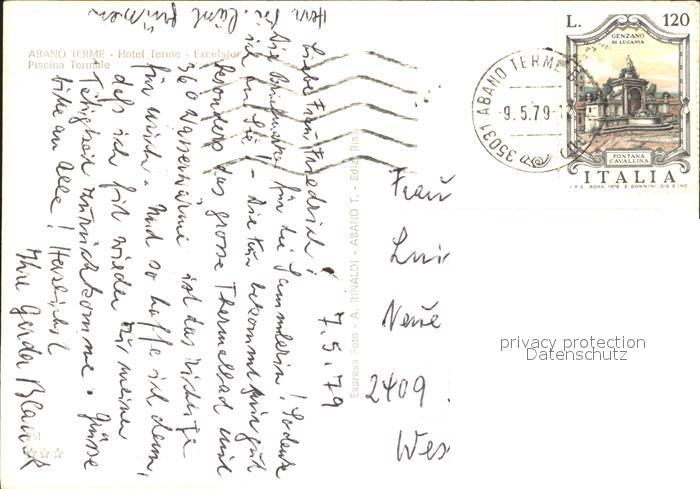 old postcard Abano Terme Hotel Excelsior postalisch gelaufen Erhaltung siehe scans