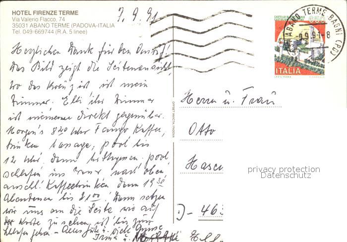 old postcard Abano Terme Hotel Firenze Terme postalisch gelaufen