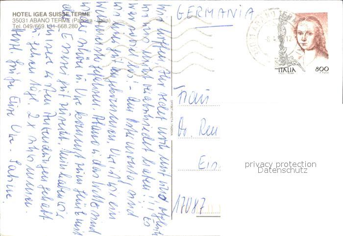 old postcard Abano Terme Hotel Igea Suisse Terme postalisch gelaufen Erhaltung siehe scans
