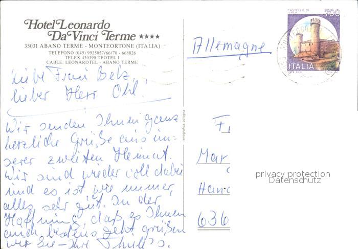 old postcard Abano Terme Hotel Leonardo da Vinci Terme postalisch gelaufen Erhaltung siehe scans