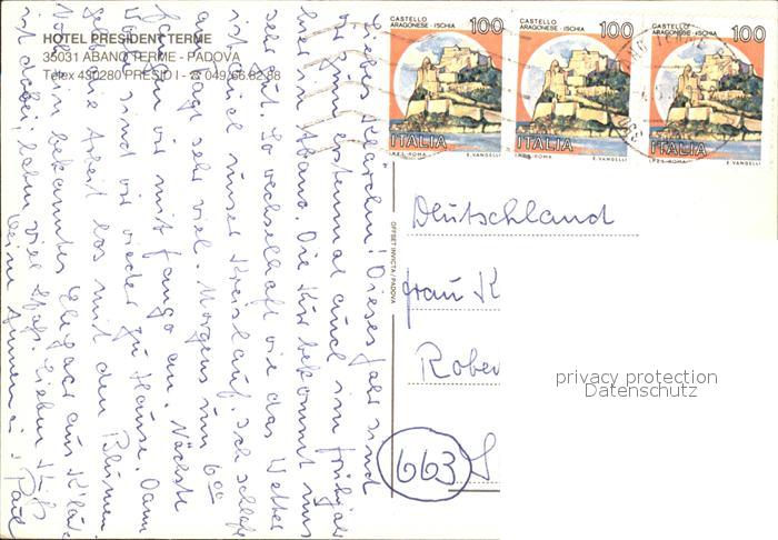 old postcard Abano Terme Hotel President Terme postalisch gelaufen Erhaltung siehe scans
