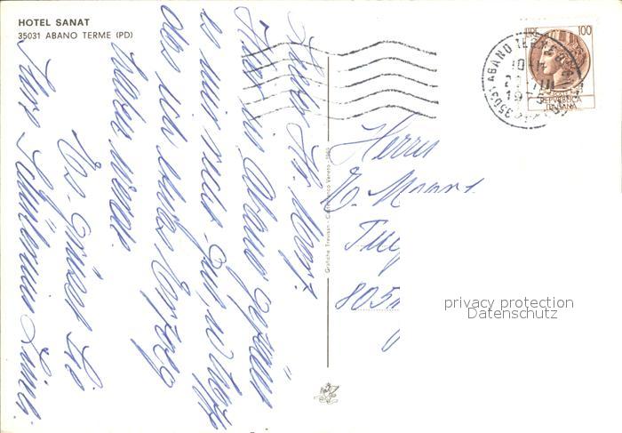 old postcard Abano Terme Hotel Sanat postalisch gelaufen Erhaltung siehe scans
