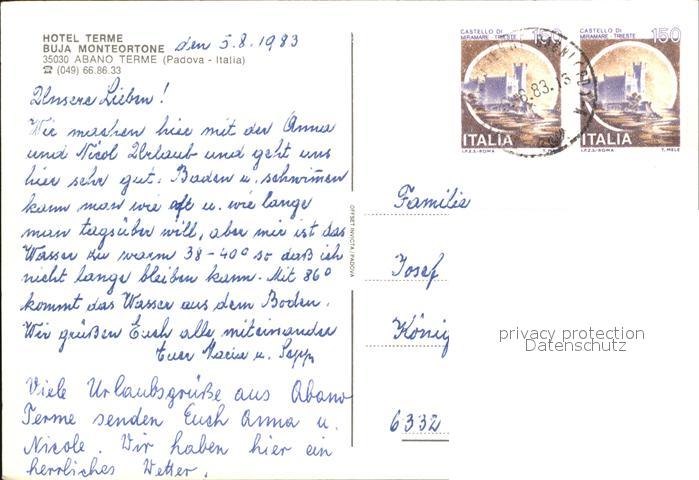 old postcard Abano Terme Hotel Terme Buja Monteortone Pool postalisch gelaufen Erhaltung siehe scans