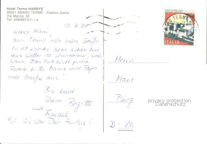old postcard Abano Terme Hotel Terme Harrys postalisch gelaufen Erhaltung siehe scans