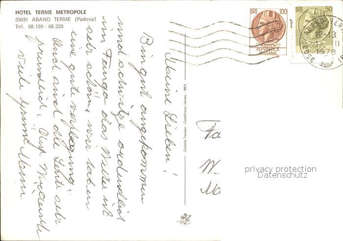 old postcard Abano Terme Hotel Terme Metropole postalisch gelaufen Erhaltung siehe scans