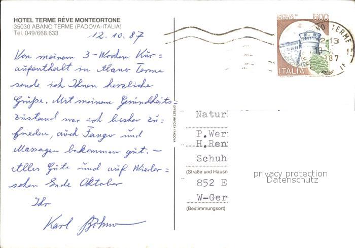 old postcard Abano Terme Hotel Terme Reve Monteortone Swimming Pool postalisch gelaufen Erhaltung siehe scans