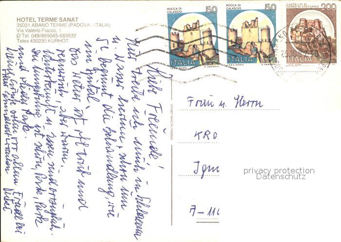 old postcard Abano Terme Hotel Terme Sanat Swimming Pool Praglia Abbazia Arqua Il Catajo postalisch gelaufen Erhaltung siehe scans