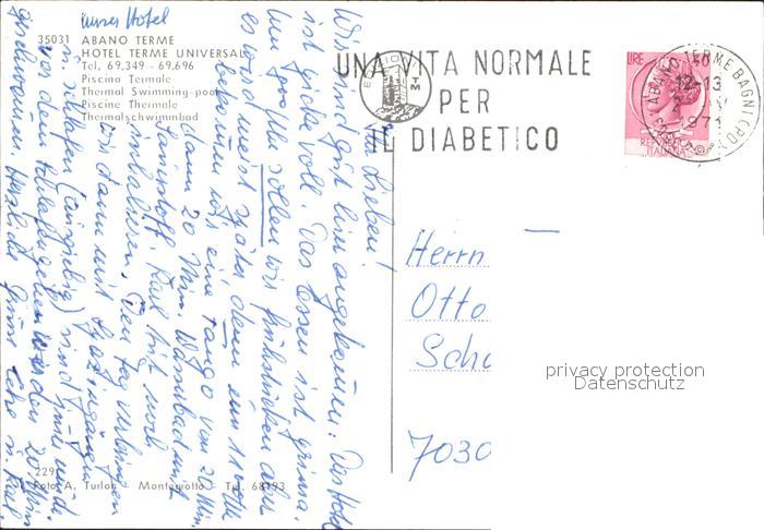 old postcard Abano Terme Hotel Terme Universal postalisch gelaufen Erhaltung siehe scans