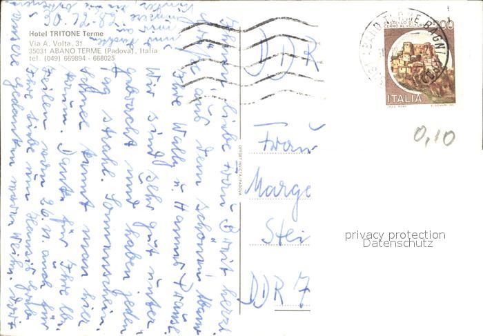 old postcard Abano Terme Hotel Tritone Terme postalisch gelaufen Erhaltung siehe scans