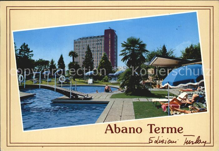 old postcard Abano Terme Kur Schwimmbad Hotel postalisch gelaufen Erhaltung siehe scans