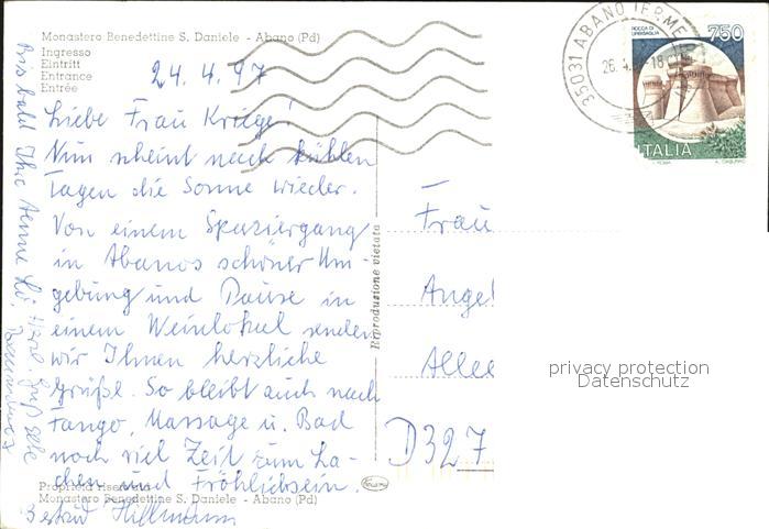 old postcard Abano Terme Monastera Benettine San Daniele Eintritt postalisch gelaufen Erhaltung siehe scans