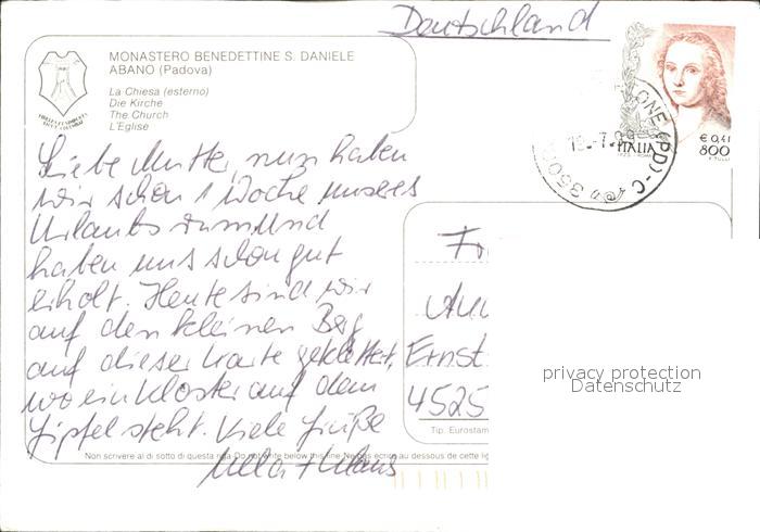 old postcard Abano Terme Monastero Benedettine San Daniele Chiesa Kloster postalisch gelaufen Erhaltung siehe scans