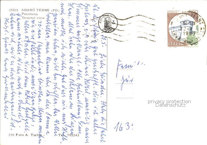 old postcard Abano Terme Panorama postalisch gelaufen Erhaltung siehe scans