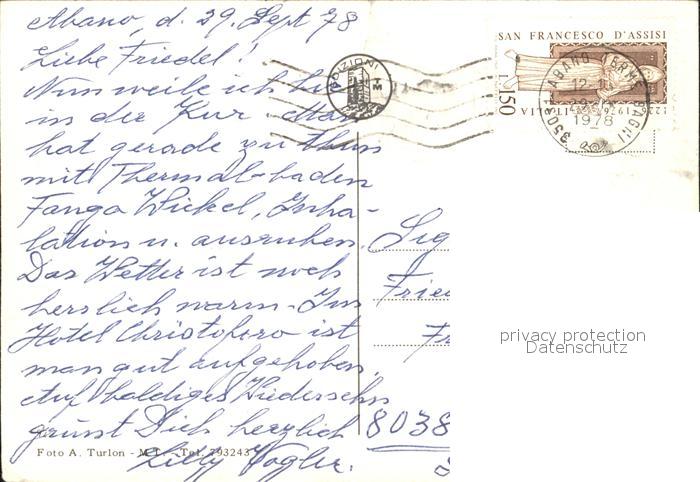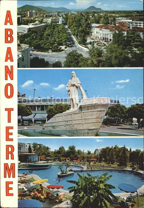 old postcard Abano Terme Panorama Denkmal Thermalbad postalisch gelaufen Erhaltung siehe scans