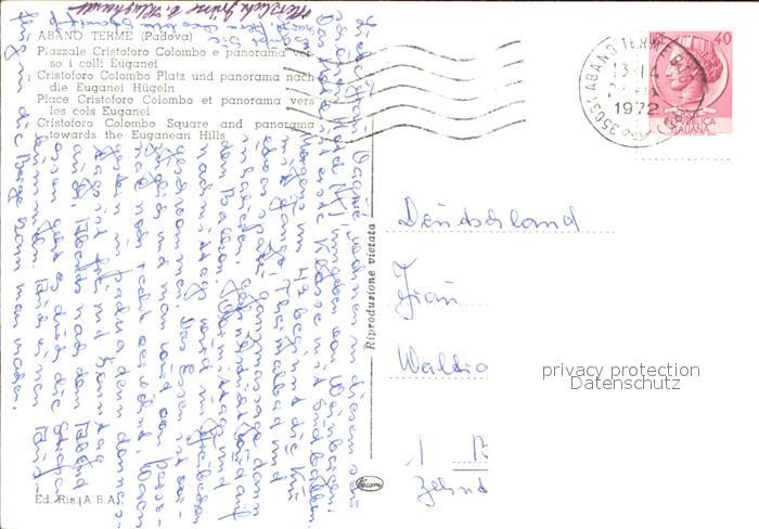 old postcard Abano Terme Piazale Cristoforo Colombo e panorama verso i colli Euganei postalisch gelaufen Erhaltung siehe scans [WerneD78]