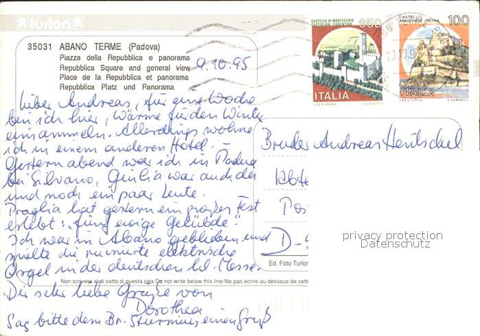 old postcard Abano Terme Piazza della Repubblica e panorama postalisch gelaufen Erhaltung siehe scans