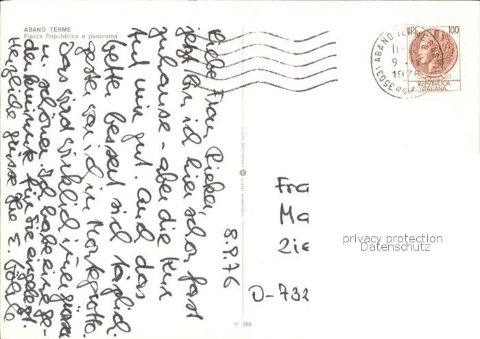 old postcard Abano Terme Piazza Repubblica Panorama postalisch gelaufen Erhaltung siehe scans