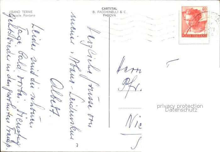 old postcard Abano Terme Piazzale Fontana postalisch gelaufen Erhaltung siehe scans