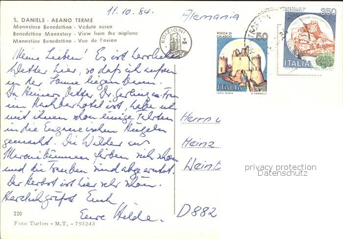 old postcard Abano Terme San Daniele postalisch gelaufen Erhaltung siehe scans