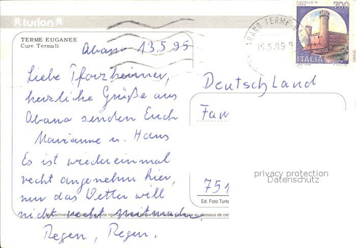 old postcard Abano Terme Terme Eugane postalisch gelaufen Erhaltung siehe scans