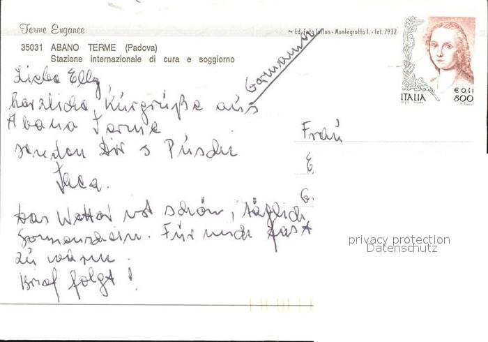 old postcard Abano Terme Terme Euganee Stazione internazionale di cura e soggiorno postalisch gelaufen Erhaltung siehe scans [WerneD78]