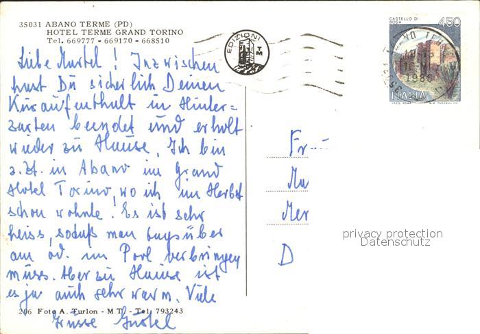 old postcard Abano Terme Terme Hotel Grand Torino postalisch gelaufen Erhaltung siehe scans
