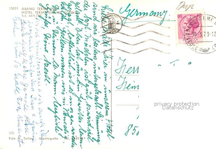 old postcard Abano Terme Terme Hotel Grand Torino Thermalbad postalisch gelaufen Erhaltung siehe scans [FriedD77]