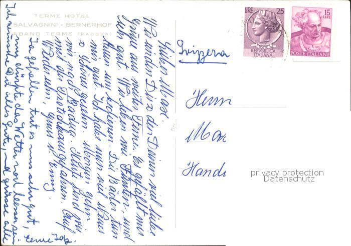 old postcard Abano Terme Terme Hotel postalisch gelaufen Erhaltung siehe scans