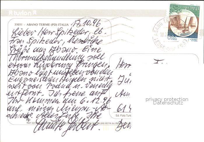 old postcard Abano Terme Thermalbecken Panorama Grand Hotel Schwimmbad postalisch gelaufen Erhaltung siehe scans