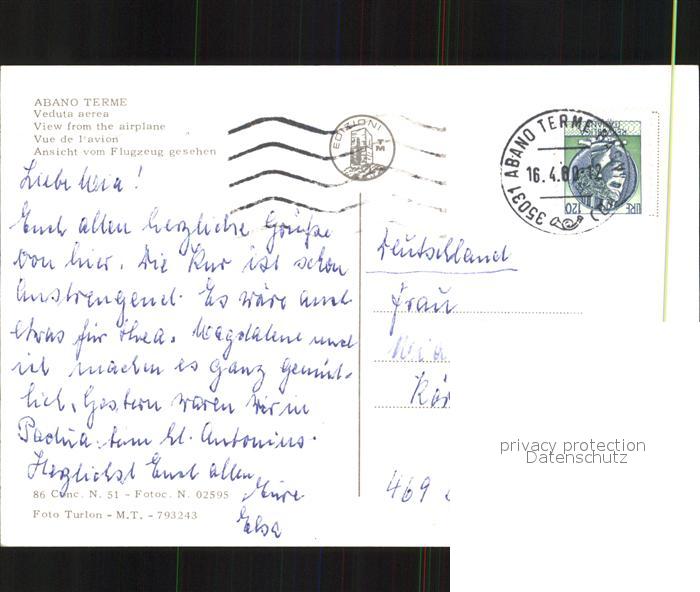 old postcard Abano Terme Veduta aerea postalisch gelaufen