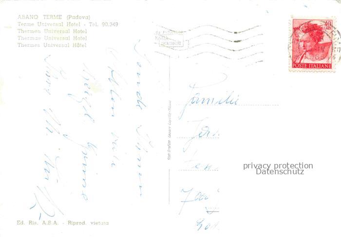 74110352 old postcard Abano Terme Veneto IT Therme Universal Hotel postalisch gelaufen Erhaltung siehe scans [WerneD78] KatCode: 11240