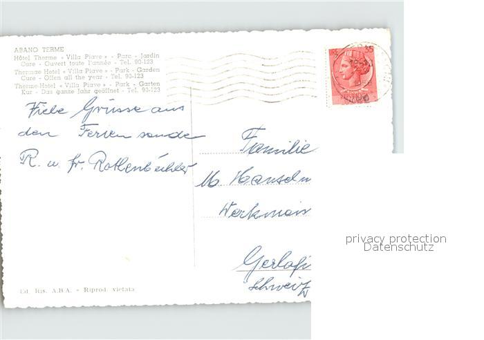 old postcard Abano Terme Villa Piave Albergo Terme postalisch gelaufen Erhaltung siehe scans
