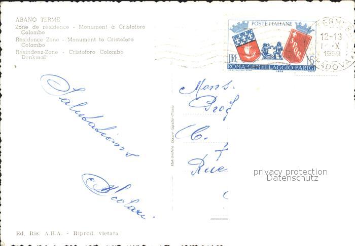 old postcard Abano Terme Zona residenziale Monumento C Colombo postalisch gelaufen