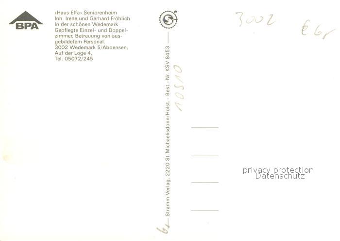 73641557 Abbensen Wedemark Seniorenheim Haus Elfa postalisch nicht gelaufen Erhaltung siehe scans [FriedD77] KatCode: 11110003241019