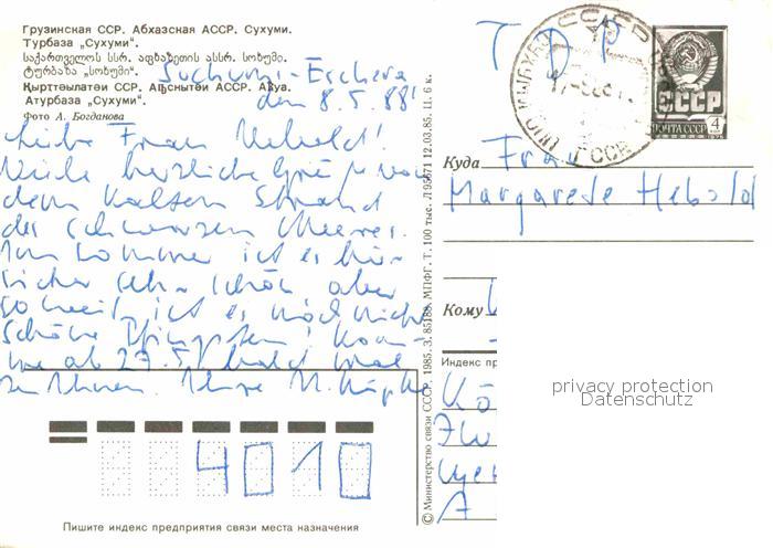 alte Postkarte Abchasien Hotel CCP postalisch gelaufen Erhaltung siehe scans [LiesaD40]