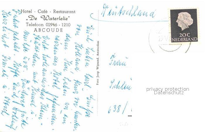 old postcard Abcoude Hotel Cafe Restaurant De Waterlelie postalisch gelaufen Erhaltung siehe scans [LiesaD40]