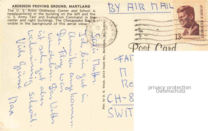 74123838 old postcard Aberdeen Maryland Proving Ground U.S. Army Ordnance Center and School aerial view postalisch gelaufen Fliegeraufnahme Erhaltung siehe scans [FriedD77] KatCode: 14140220000000