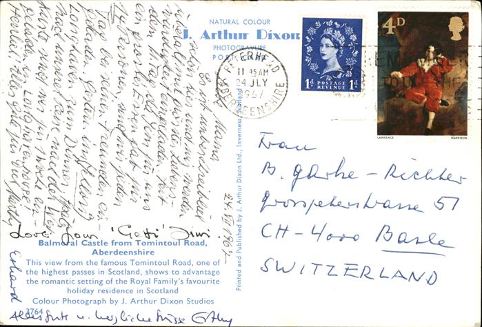 old postcard Aberdeenshire Balmoral Castle view from Tormintoul Road postalisch gelaufen Erhaltung siehe scans