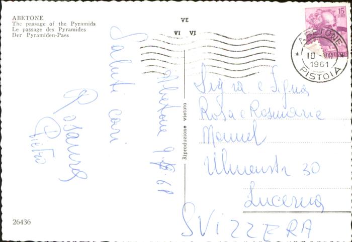 old postcard Abetone Passo Piramidi postalisch gelaufen