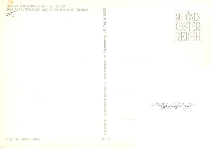 73516623 Abfaltersbach Gasthof Mitterdorfer im Pustertal postalisch nicht gelaufen Erhaltung siehe scans [FriedD77] KatCode: 11390333070701