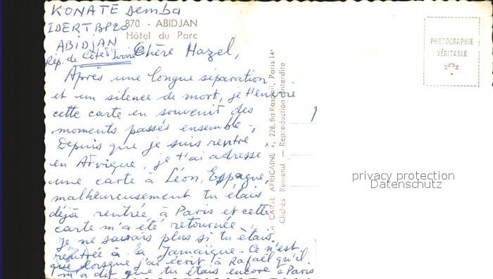 Abidjan Hotel du Parc postalisch nicht gelaufen Erhaltung siehe scans