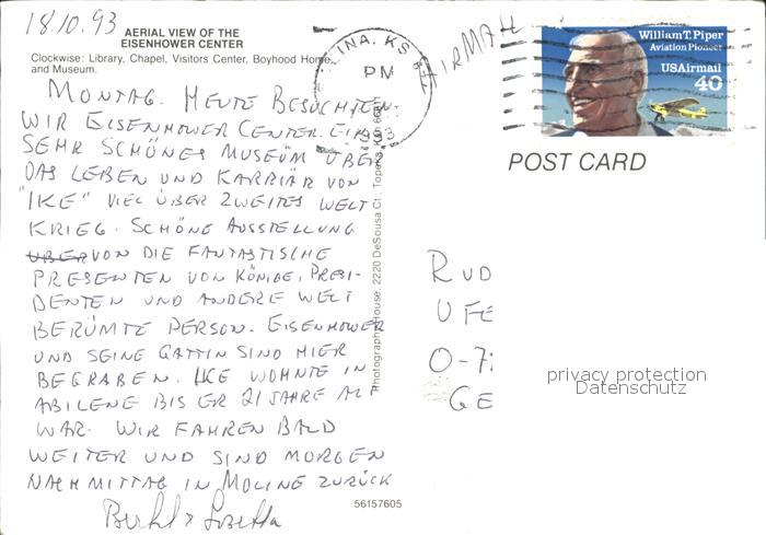 72279677 old postcard Abilene Kansas Fliegeraufnahme Eisenhower Center postalisch gelaufen Erhaltung siehe scans KatCode: 14140180000000
