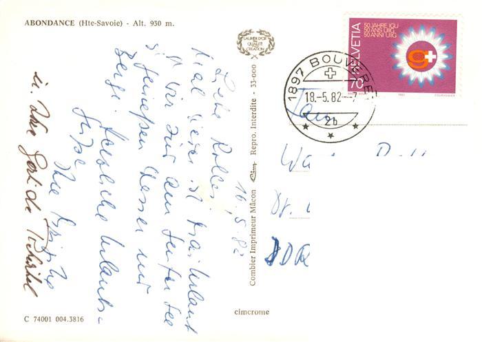 13883383 Abondance 74 Haute-Savoie Fliegeraufnahme Panorama Kirche postalisch gelaufen Erhaltung siehe scans [FriedD77] carte postale Frie Katcode 11170074474001