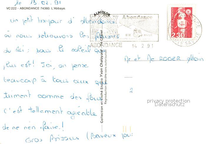 13253326 carte postale Abondance Abbaye postalisch gelaufen Erhaltung siehe scans [KathaD81] KatCode: 11170074474001