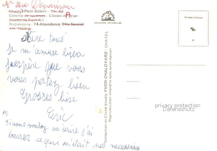 13582598 Abondance Chalet Plein Soleil Colonie de vacances Classes de Plein Air postalisch nicht gelaufen Erhaltung siehe scans [WerneD78] Wern Katcode 11170074474001