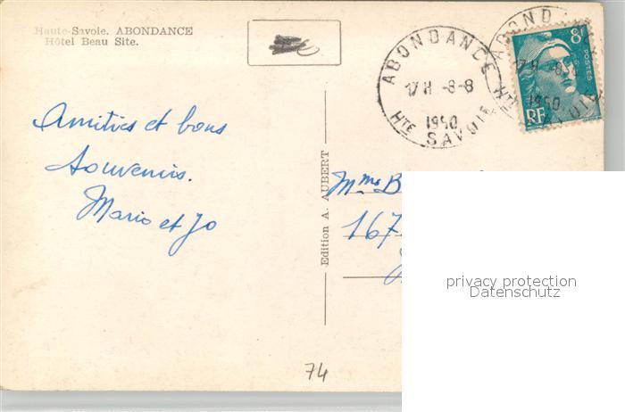 13489851 carte postale Abondance Hotel Beau Site postalisch gelaufen Erhaltung siehe scans [FriedD77] KatCode: 11170074474001